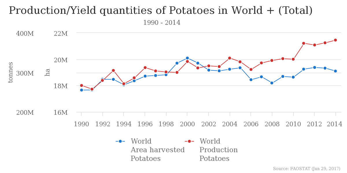 Potatoes: the biggest producers of potatoes are China (95MT), India (46MT), Russia (31MT), Ukraine (23MT), and US (20MT).